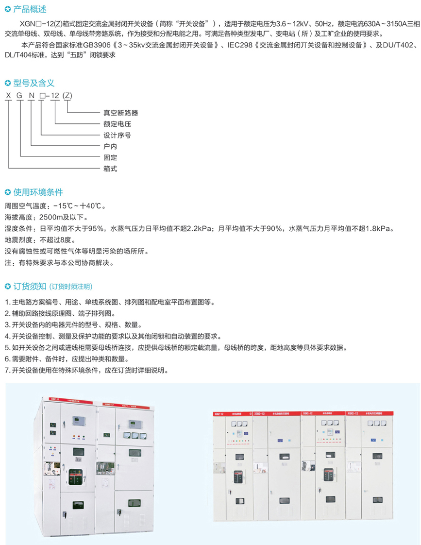 XGN口-12箱式固定交流金屬封閉開關(guān)設(shè)備